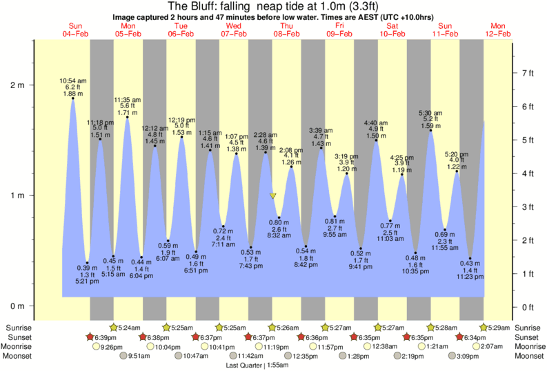 Image captured 2 hours and 47 minutes before low water (falling neap tide). Tide height was 1.0m (3.3 ft). Range 2.12m (7.0 ft). Toggle tide graph