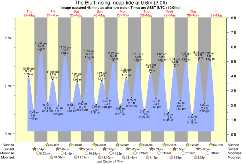 Image captured 48 minutes after low water (rising neap tide). Tide height was 0.6m (2.0 ft). Range 2.16m (7.1 ft). Toggle tide graph