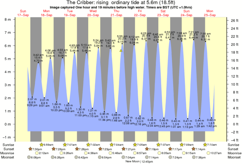 Image captured One hour and 19 minutes before high water (rising ordinary tide). Tide height was 5.6m (18.5 ft). Range 7.92m (26.0 ft). Toggle tide graph