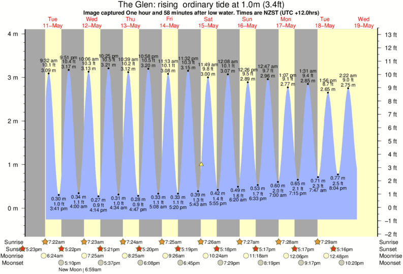 Image captured One hour and 58 minutes after low water (rising ordinary tide). Tide height was 1.0m (3.4 ft). Range 3.97m (13.0 ft). Toggle tide graph