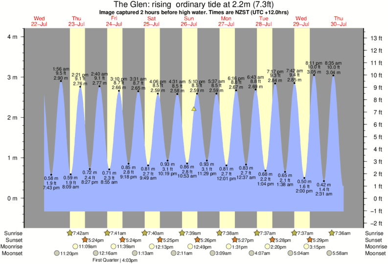 Image captured 2 hours before high water (rising ordinary tide). Tide height was 2.2m (7.3 ft). Range 4.13m (13.5 ft). Toggle tide graph