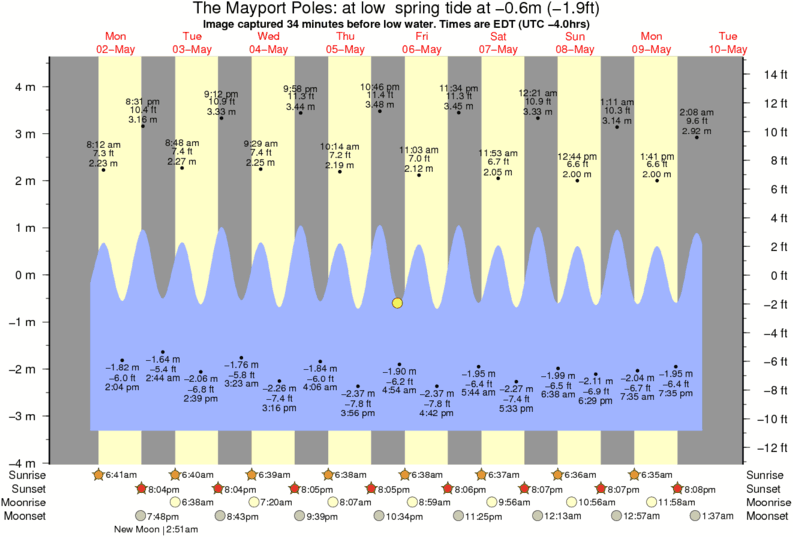 Forecast wind and swell just offshore from The Mayport Poles around the time the photo was taken
