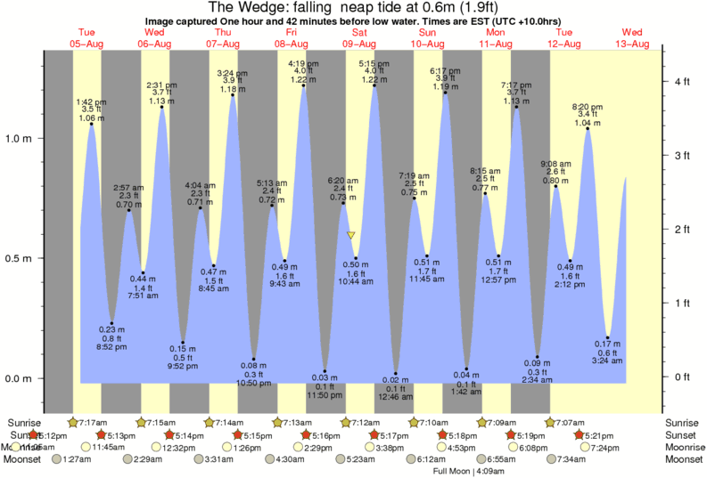 Image captured One hour and 42 minutes before low water (falling neap tide). Tide height was 0.6m (1.9 ft). Range 1.26m (4.1 ft). Toggle tide graph