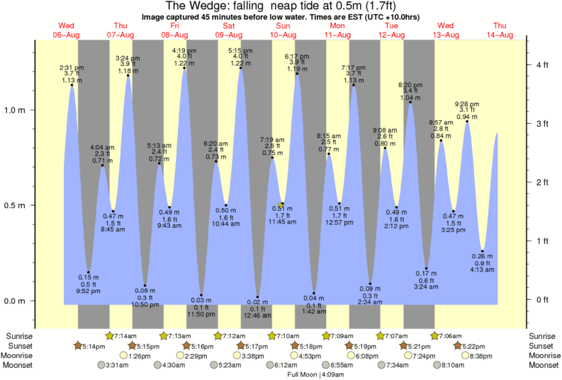 Image captured 45 minutes before low water (falling neap tide). Tide height was 0.5m (1.7 ft). Range 1.26m (4.1 ft). Toggle tide graph