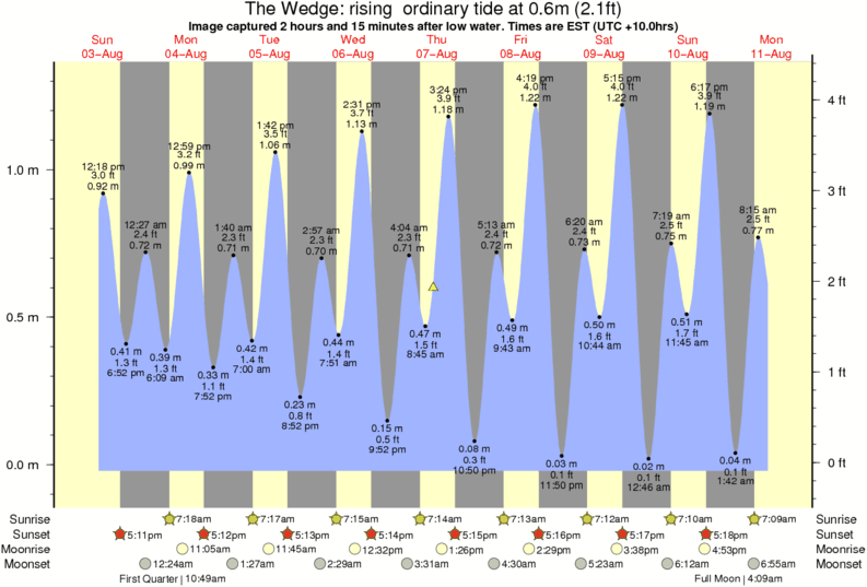 Image captured 2 hours and 15 minutes after low water (rising ordinary tide). Tide height was 0.6m (2.1 ft). Range 1.26m (4.1 ft). Toggle tide graph