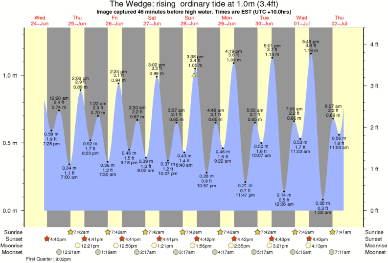 Image captured 46 minutes before high water (rising ordinary tide). Tide height was 1.0m (3.4 ft). Range 1.23m (4.0 ft). Toggle tide graph