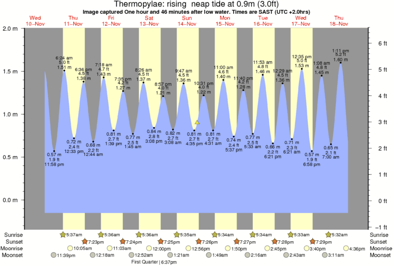 Forecast wind and swell just offshore from Thermopylae around the time the photo was taken