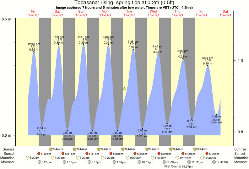 Image captured 7 hours and 5 minutes after low water (rising spring tide). Tide height was 0.2m (0.5 ft). Range 0.46m (1.5 ft). Toggle tide graph
