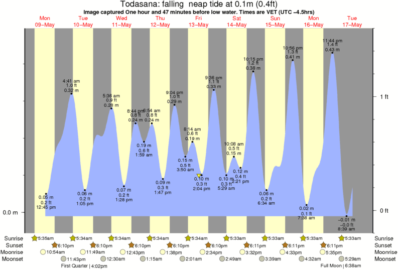 Image captured One hour and 47 minutes before low water (falling neap tide). Tide height was 0.1m (0.4 ft). Range 0.46m (1.5 ft). Toggle tide graph