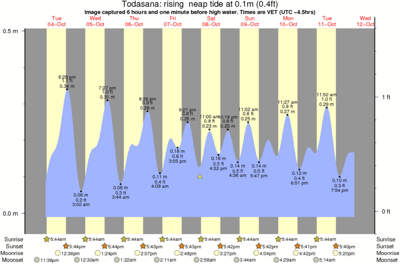 Image captured 6 hours and one minute before high water (rising neap tide). Tide height was 0.1m (0.4 ft). Range 0.47m (1.5 ft). Toggle tide graph