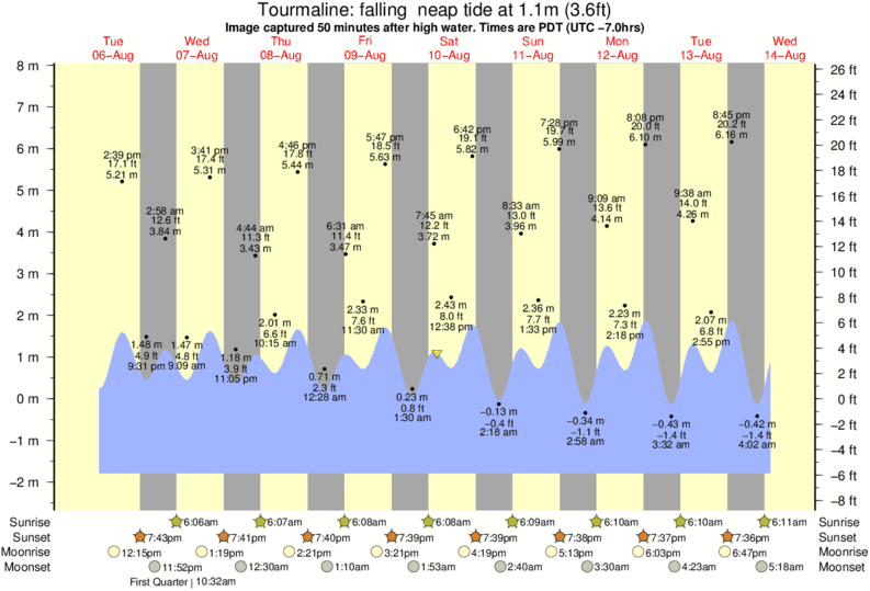 Image captured 50 minutes after high water (falling neap tide). Tide height was 1.1m (3.6 ft). Range 8.95m (29.4 ft). Toggle tide graph