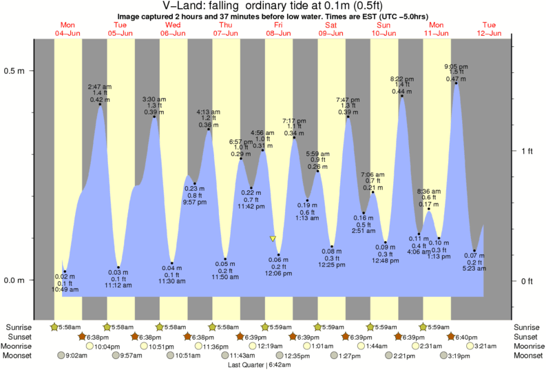 Image captured 2 hours and 37 minutes before low water (falling ordinary tide). Tide height was 0.1m (0.5 ft). Range 0.56m (1.8 ft). Toggle tide graph