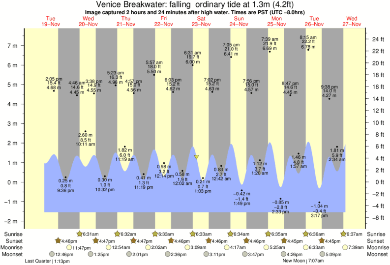 Forecast wind and swell just offshore from Venice Breakwater around the time the photo was taken