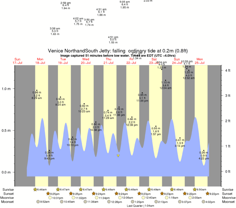 Forecast wind and swell just offshore from Venice North and South Jetty around the time the photo was taken
