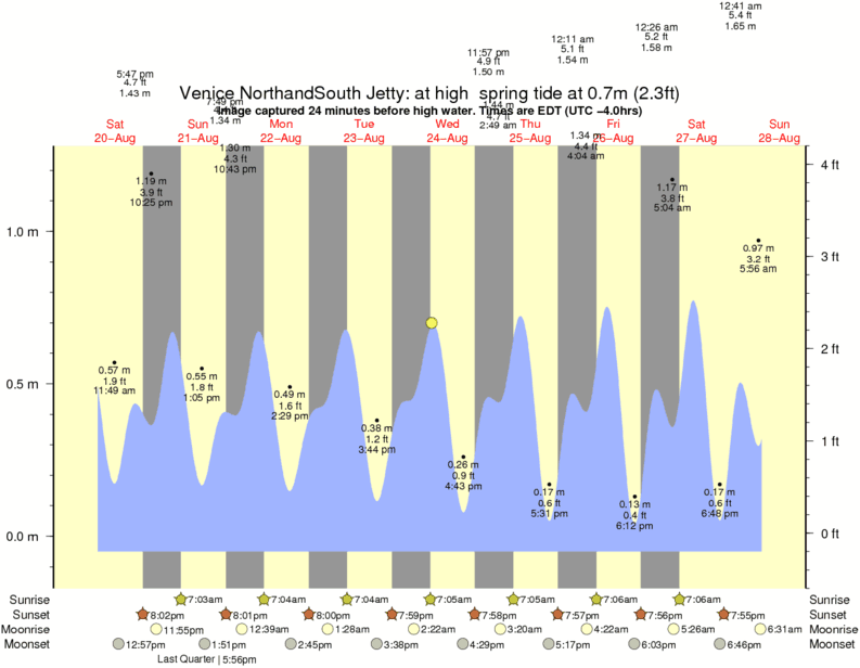 Forecast wind and swell just offshore from Venice North and South Jetty around the time the photo was taken