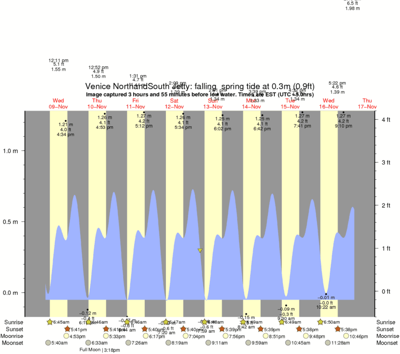 Forecast wind and swell just offshore from Venice North and South Jetty around the time the photo was taken