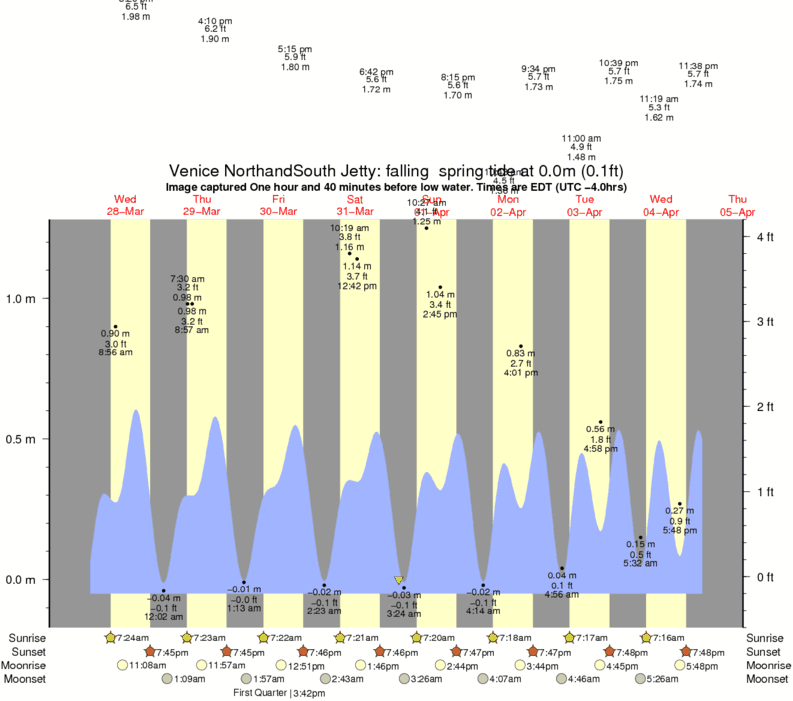 Forecast wind and swell just offshore from Venice North and South Jetty around the time the photo was taken