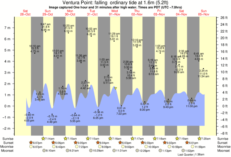 Forecast wind and swell just offshore from Ventura Point around the time the photo was taken