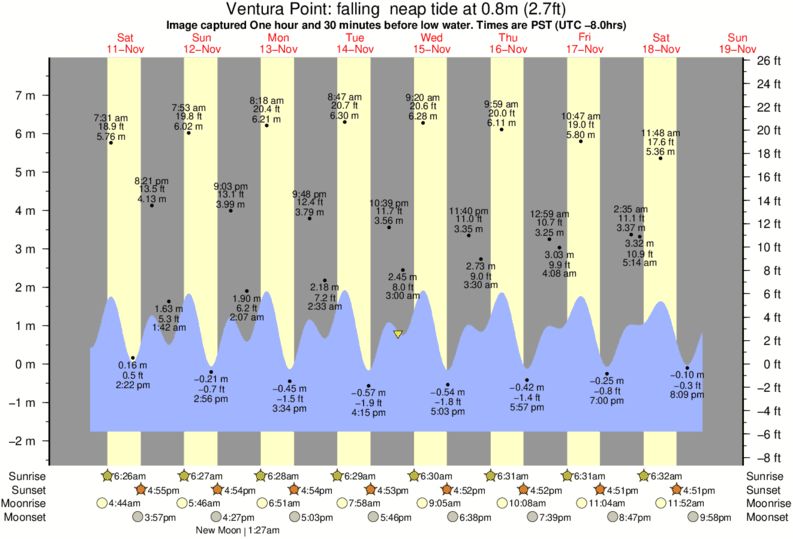 Forecast wind and swell just offshore from Ventura Point around the time the photo was taken