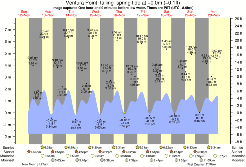 Forecast wind and swell just offshore from Ventura Point around the time the photo was taken
