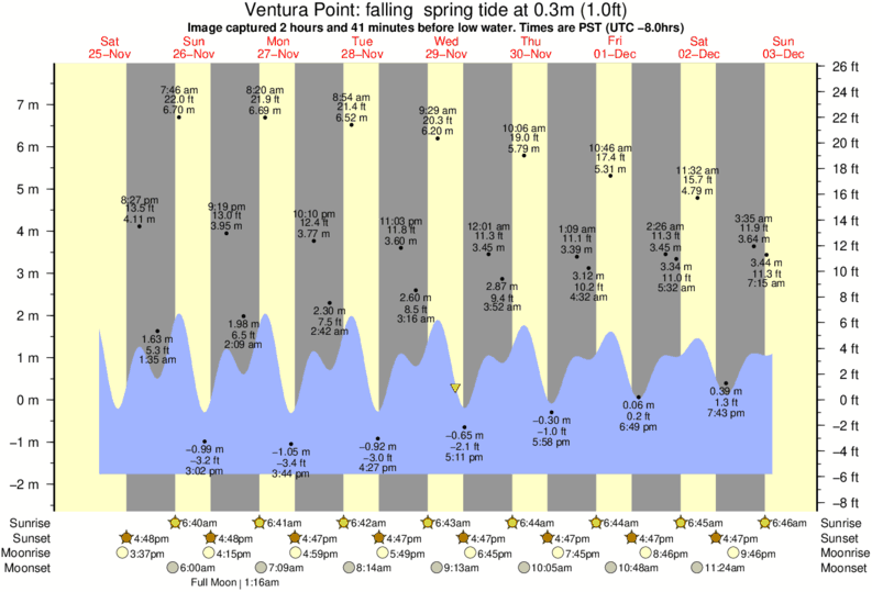 Forecast wind and swell just offshore from Ventura Point around the time the photo was taken