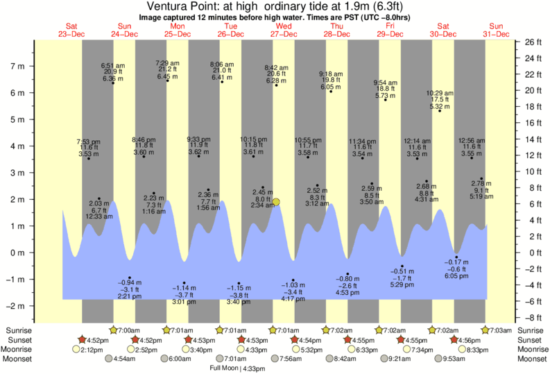 Forecast wind and swell just offshore from Ventura Point around the time the photo was taken