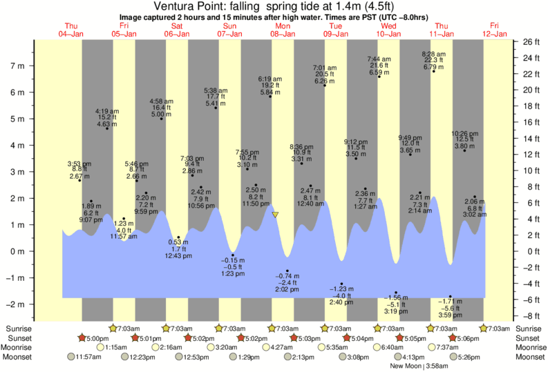 Forecast wind and swell just offshore from Ventura Point around the time the photo was taken