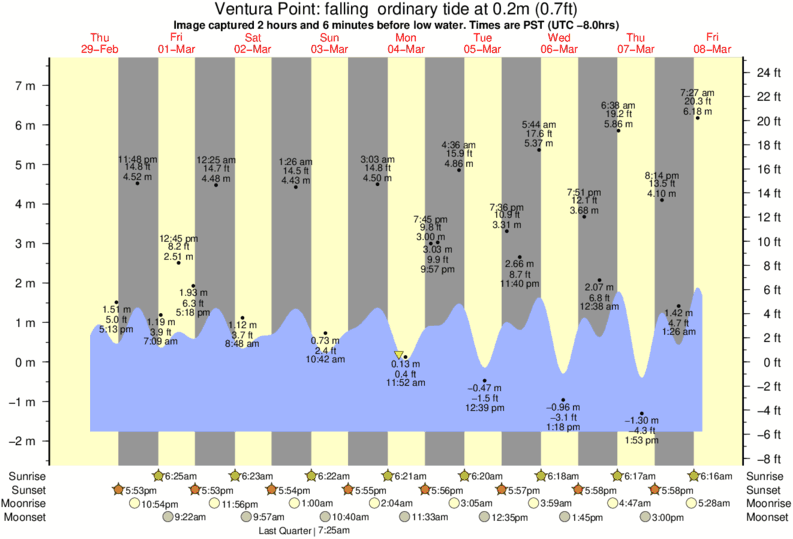 Image captured 2 hours and 6 minutes before low water (falling ordinary tide). Tide height was 0.2m (0.7 ft). Range 8.61m (28.2 ft). Toggle tide graph