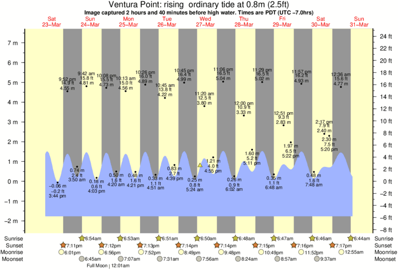 Forecast wind and swell just offshore from Ventura Point around the time the photo was taken