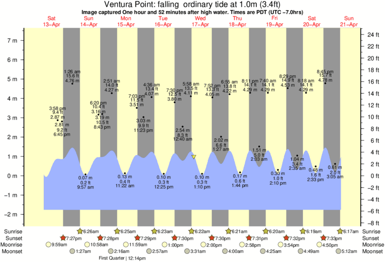 Forecast wind and swell just offshore from Ventura Point around the time the photo was taken