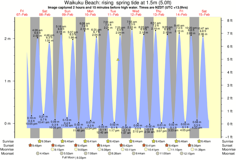 Forecast wind and swell just offshore from Waikuku Beach around the time the photo was taken