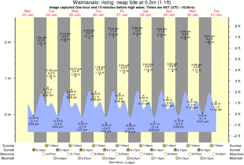 Image captured One hour and 15 minutes before high water (rising neap tide). Tide height was 0.3m (1.1 ft). Range 2.89m (9.5 ft). Toggle tide graph