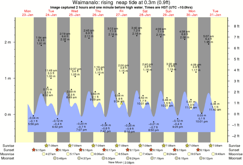 Image captured 2 hours and one minute before high water (rising neap tide). Tide height was 0.3m (0.9 ft). Range 2.89m (9.5 ft). Toggle tide graph