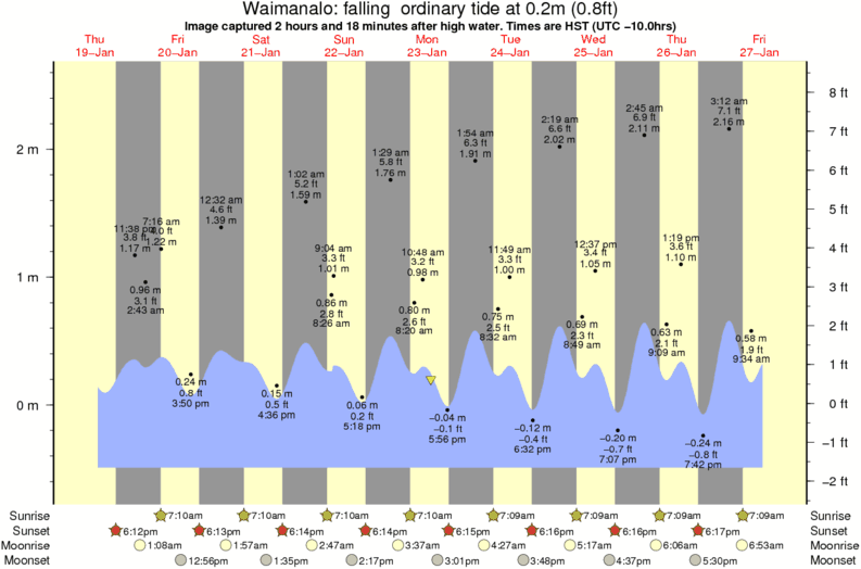 Forecast wind and swell just offshore from Waimanalo around the time the photo was taken