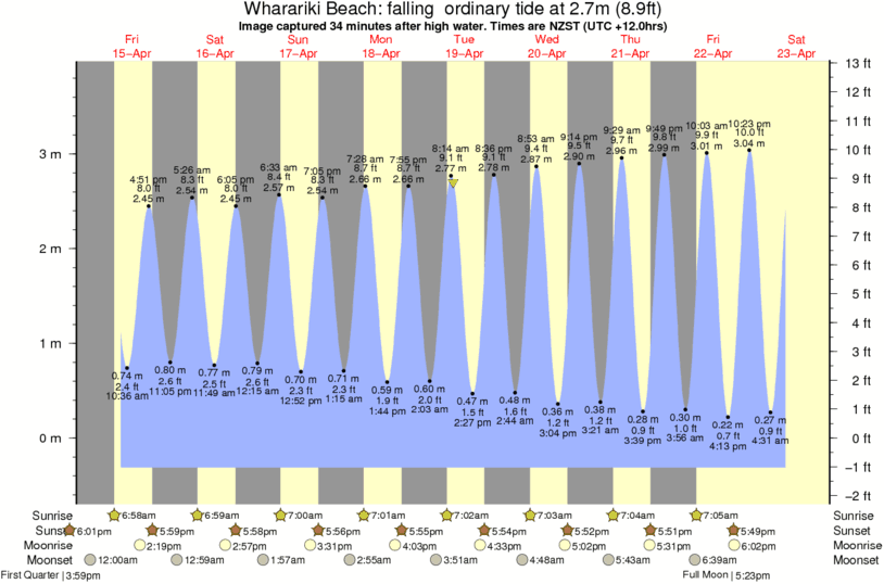 Forecast wind and swell just offshore from Wharariki Beach around the time the photo was taken