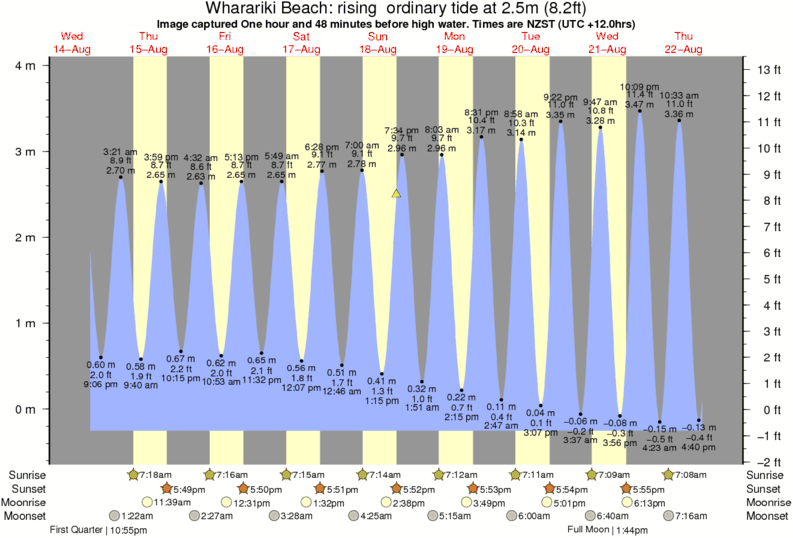 Forecast wind and swell just offshore from Wharariki Beach around the time the photo was taken