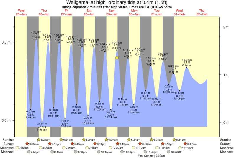 Forecast wind and swell just offshore from Weligama around the time the photo was taken