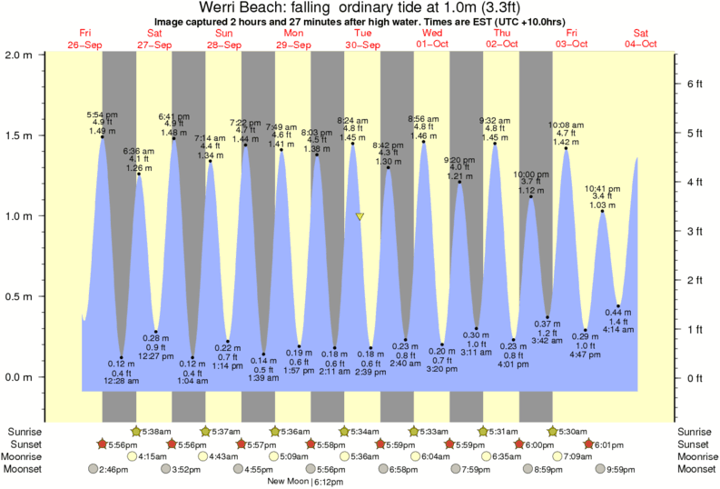 Image captured 2 hours and 27 minutes after high water (falling ordinary tide). Tide height was 1.0m (3.3 ft). Range 1.92m (6.3 ft). Toggle tide graph