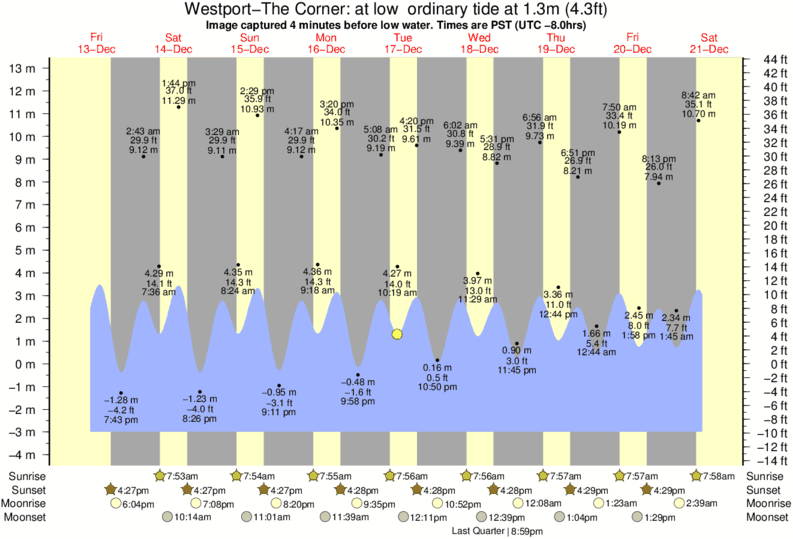 Image captured 4 minutes before low water (at low ordinary tide). Tide height was 1.3m (4.3 ft). Range 14.96m (49.1 ft). Toggle tide graph
