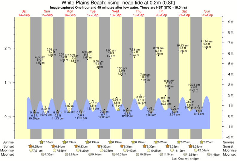 Forecast wind and swell just offshore from White Plains Beach around the time the photo was taken
