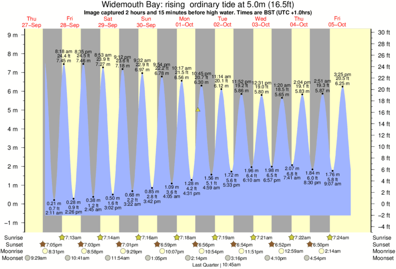 Image captured 2 hours and 15 minutes before high water (rising ordinary tide). Tide height was 5.0m (16.5 ft). Range 9.04m (29.7 ft). Toggle tide graph