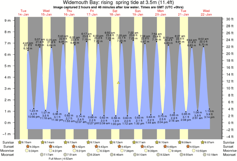 Image captured 2 hours and 46 minutes after low water (rising spring tide). Tide height was 3.5m (11.4 ft). Range 8.98m (29.5 ft). Toggle tide graph