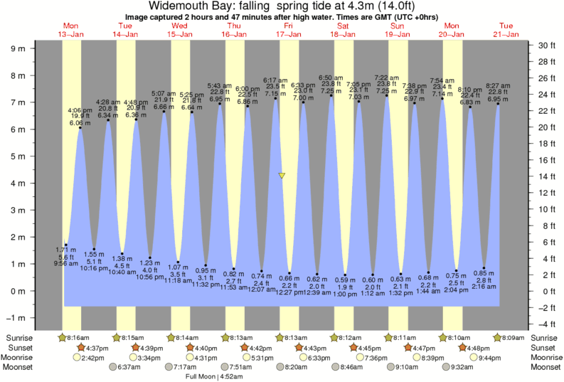 Image captured 2 hours and 47 minutes after high water (falling spring tide). Tide height was 4.3m (14.0 ft). Range 8.98m (29.5 ft). Toggle tide graph