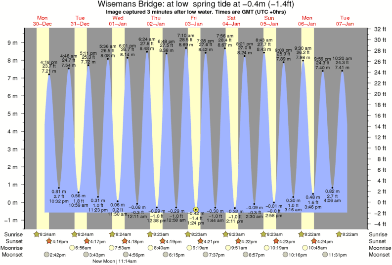 Image captured 3 minutes after low water (at low spring tide). Tide height was -0.4m (-1.4 ft). Range 9.45m (31.0 ft). Toggle tide graph