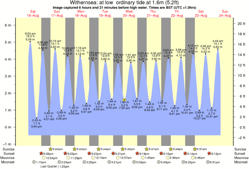 Image captured 6 hours and 21 minutes before high water (at low ordinary tide). Tide height was 1.6m (5.2 ft). Range 6.29m (20.6 ft). Toggle tide graph