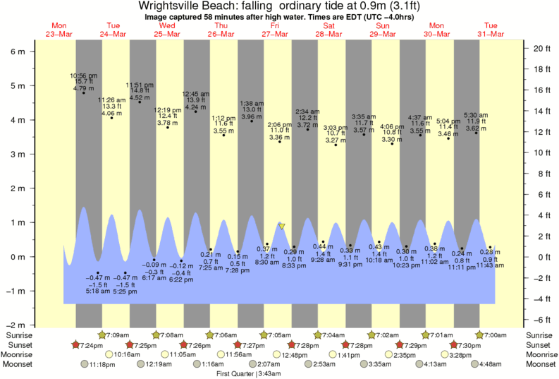 Image captured 58 minutes after high water (falling ordinary tide). Tide height was 0.9m (3.1 ft). Range 7.02m (23.0 ft). Toggle tide graph