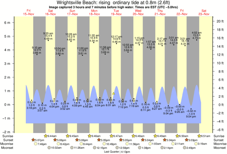 Forecast wind and swell just offshore from Wrightsville Beach around the time the photo was taken