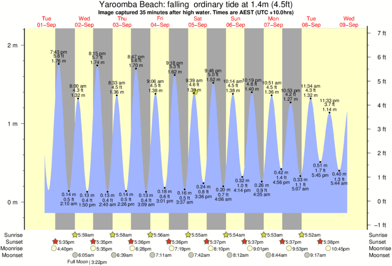 Image captured 35 minutes after high water (falling ordinary tide). Tide height was 1.4m (4.5 ft). Range 2.14m (7.0 ft). Toggle tide graph