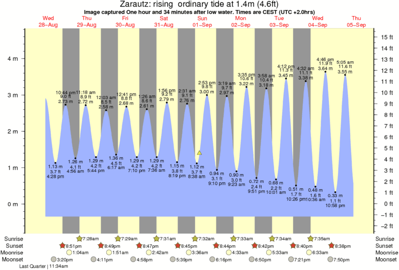 Image captured One hour and 34 minutes after low water (rising ordinary tide). Tide height was 1.4m (4.6 ft). Range 4.70m (15.4 ft). Toggle tide graph
