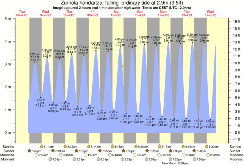Image captured 2 hours and 4 minutes after high water (falling ordinary tide). Tide height was 2.9m (9.5 ft). Range 4.60m (15.1 ft). Toggle tide graph